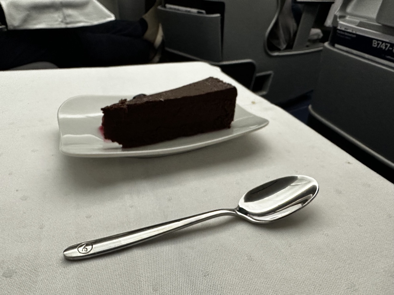 Wieder einmal habe ich festgestellt, wie gut mir das Oberdeck gefällt und dass die Sitze hier zu meinen Favoriten gehören. Ich hatte zwar auch schon mehrere Flüge im Maindeck, hier sind in der 747-8 die Sitze im hinteren Bereich meine Lieblinge. Dort sind nur zwei Reihen in einem kleineren Abteil. In der 747-400 gibt es einige Plätze in der Nase, da die ältere Jumbo-Version keine First Class hat.