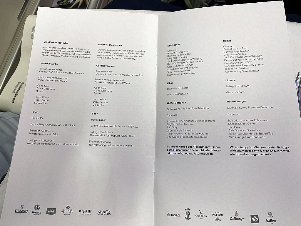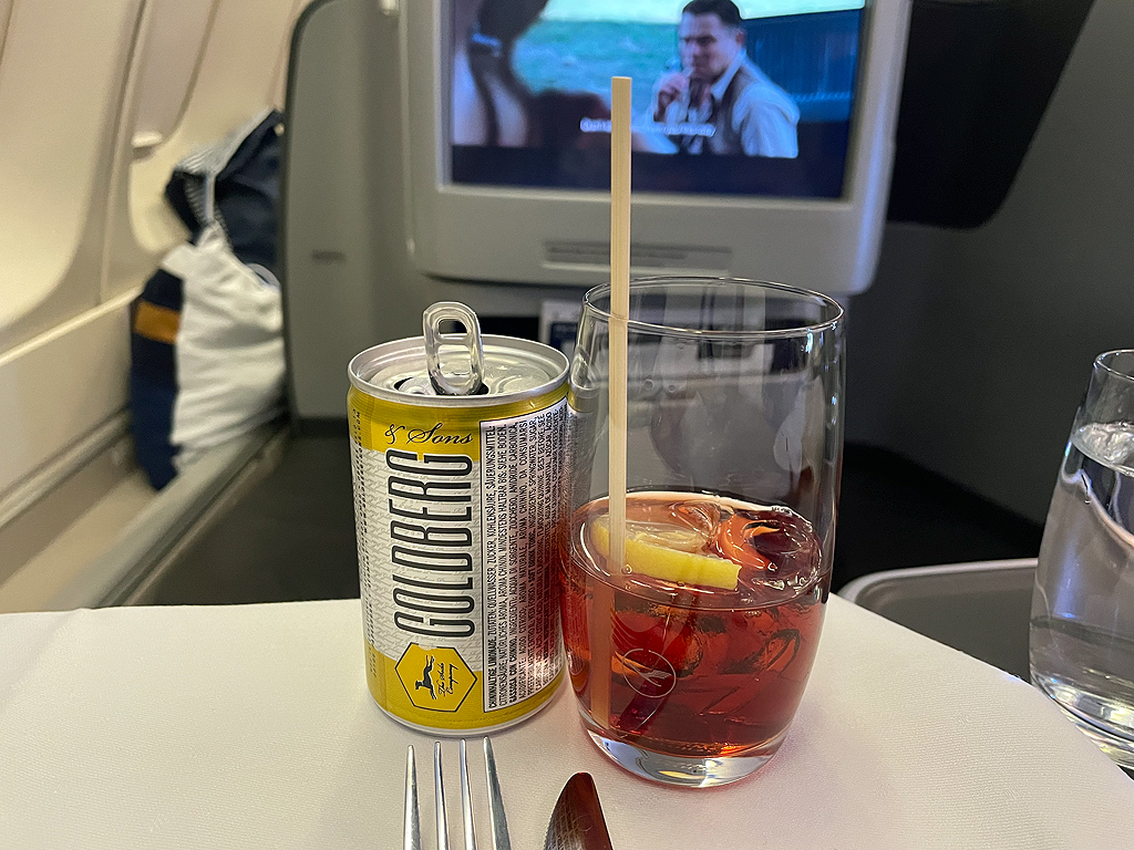 Vor dem Essen wurden Getränke ausgeteilt, ich entschied mich für den neuen Lufthansa Aperitif.
