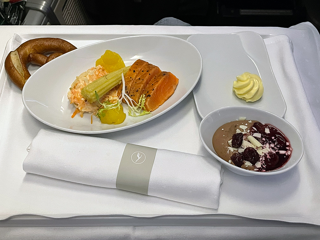 Als vor der Landung der Snack serviert wurde, teilte man uns mit, dass die bestellten Essen doch geladen waren – man hätte sie schlicht übersehen.