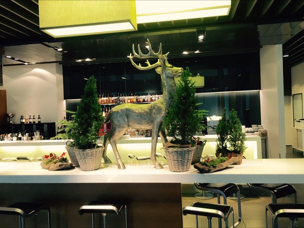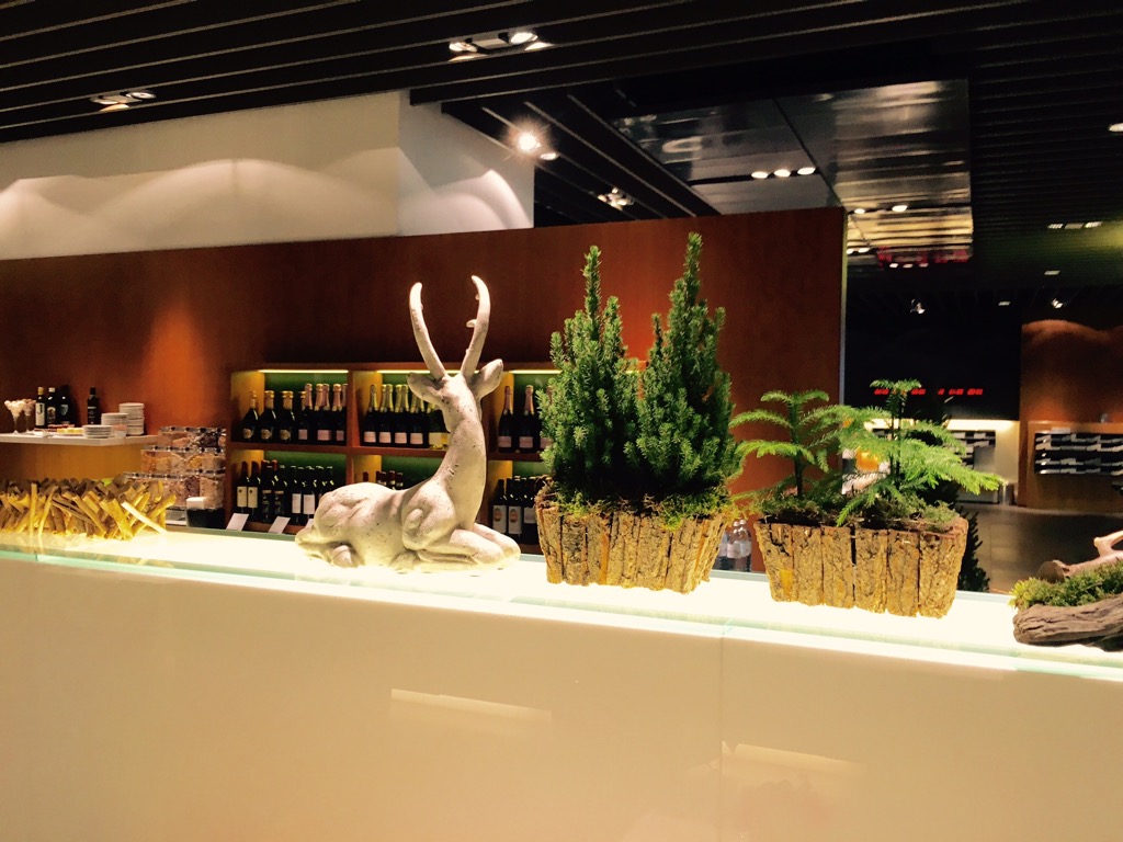 Unsere Personal Assistent kümmerte sich um unsere Bordkarten, während wir im Restaurant noch schnell ein pre flight Lunch eingenommen haben. Während unserem Besuch gab es gerade ein Herbst- Winter Special. Sowohl die Kürbis Suppe, die Gans, als auch das Schokoladen Dessert waren fantastisch. Ich finde diese Specials immer eine sehr angenehme Abwechslung, auch da hier das First Class Terminal, wie auch die First Class Lounges immer sehr schön dekoriert sind.