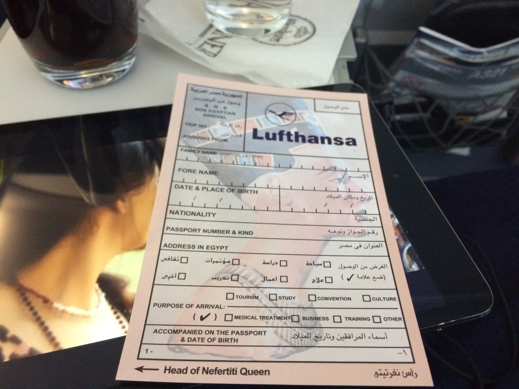 Etwa eine Stunde vor der Landung in Kairo wurden noch die Einreisekarten, sowie Schokolade zum Abschied verteilt.