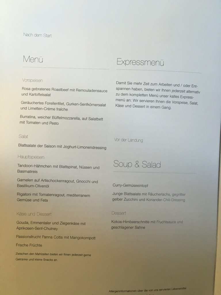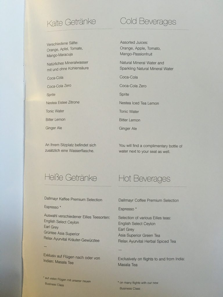 Auch stellte sich die für mich zuständige Flugbegleiterin Nadine bei mir vor und fragte nach meinem Getränkewunsch. Das Vorstellen des für einen zuständigen Flugbegleiter gehört innerhalb des Lufthansa „Restaurant Services“, zum Standard. Allerdings geschieht dies für gewöhnlich bereits am Boden. Ich gehe davon aus, dass man aufgrund meines späten Boardings in Frankfurt keine Zeit mehr dazu hatte, da einige Passagiere bereits eine Speisekare hatten.