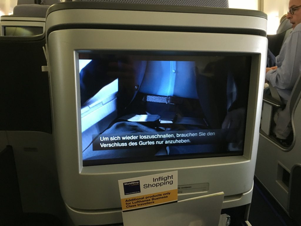 Der Lufthansa Business Class Sitz verfügt natürlich auch über einen eigenen Monitor auf welchen sich im IFE Filme und Serien schauen lassen. Dieser Monitor lässt sich auch in seinem Winkel verstellen, was ich persönlich sehr angenehm finde.