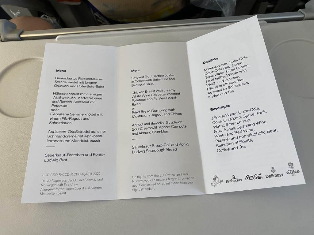 Ein Ding, was ich vermutlich nie verstehen werde: Schon ab Reihe 6 (von 12) musste den Gästen der Wunsch nach einem Fleischgericht verwehrt werden. Berücksichtigt man, dass Reihe 1 nur eine halbe ist und mindestens auf Reihe 3 noch ein freier Platz war, stelle ich mir die Frage, wie die Airline davon ausgehen kann, dass deutlich mehr als die Hälfte der Gäste keinen Bock auf Fleisch hat. Wie weit von der Realität muss man entfernt sein oder wie schlecht kann man das Catering planen?