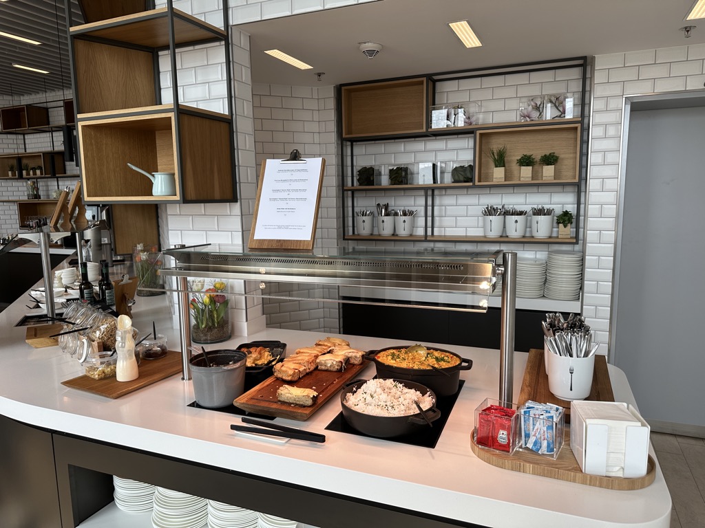 Das gastronomische Angebot der Lufthansa Business Lounge Berlin gleicht insgesamt dem der anderen deutschen Lounges im Loungenetzwerk der Lufthansa. Während meines Besuchs am frühen Nachmittag wurde ein warmes Menü serviert, das eine vegetarische und fleischhaltige Option bereithielt.