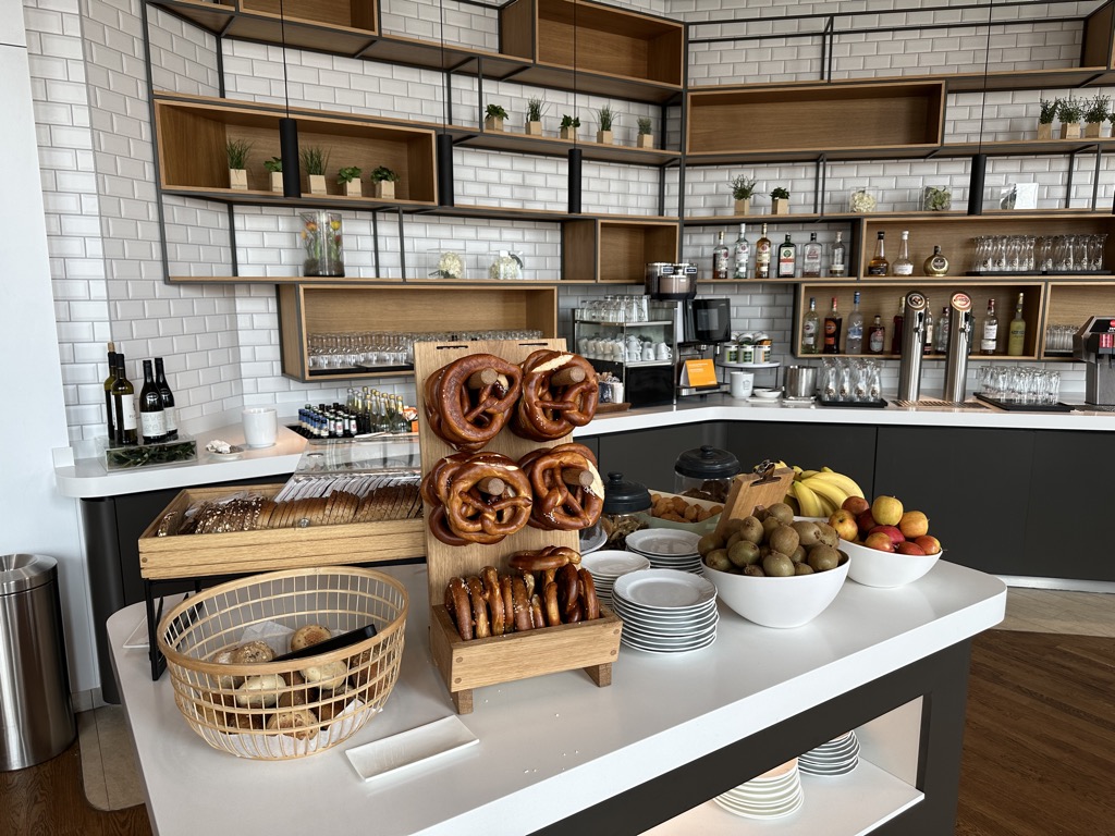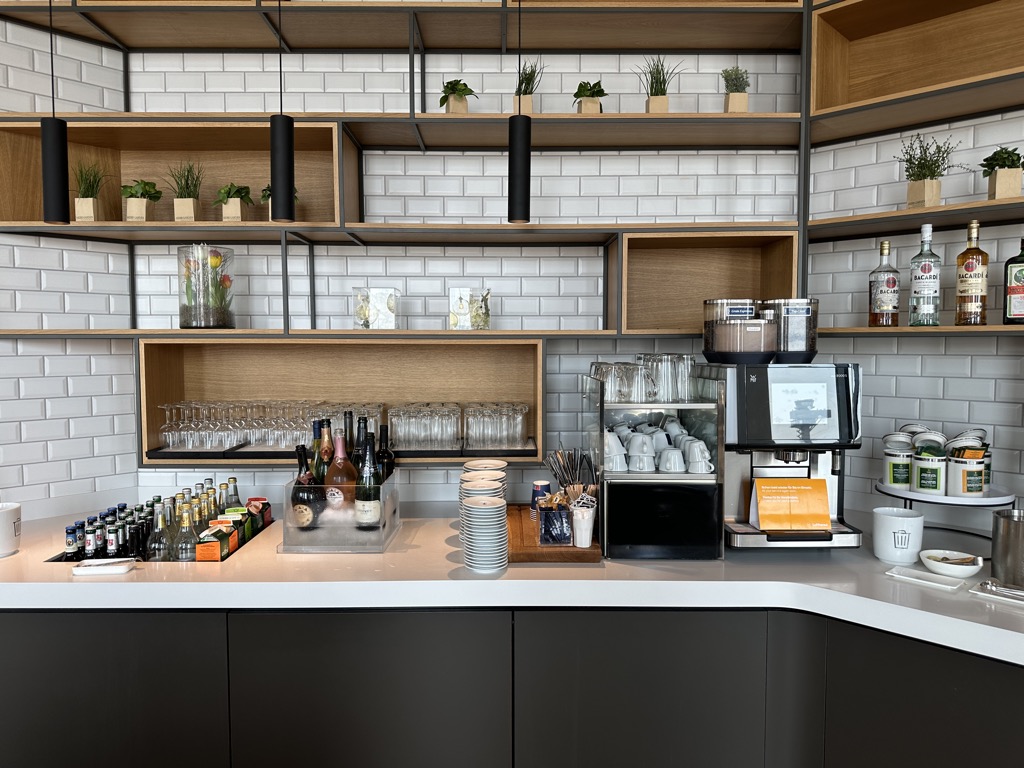 Zudem stehen ganztägig gängige alkoholische und nicht alkoholische Getränke und kleine Snacks zur Selbstbedienung bereit. Einen persönlichen Service wie in einigen Senator Lounges gibt es hier nicht.