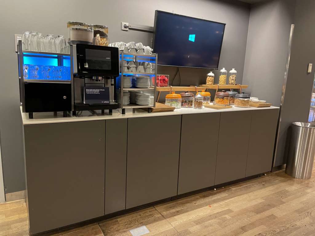 Wie in quasi allen Lufthansa Lounges fehlt auch in der Münchener Business Lounge eine kleine Bar mit süßen und salzigen Snacks genauso wenig wie ein Angebot an Backwaren.