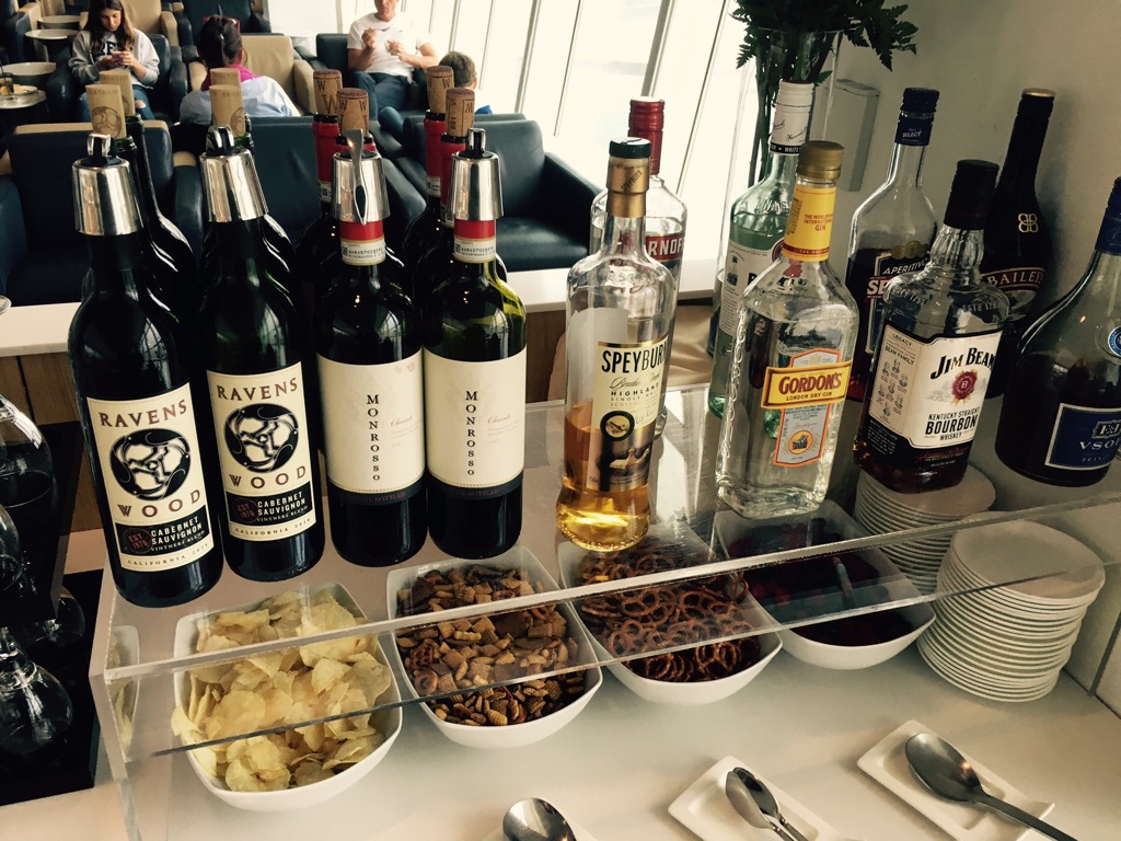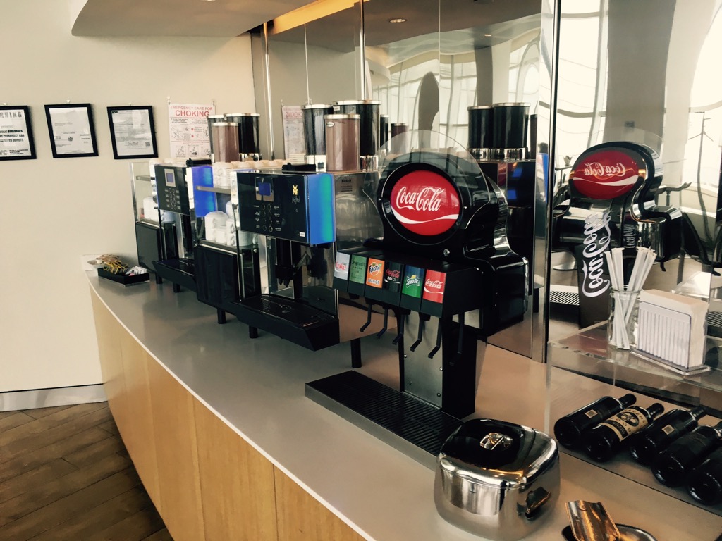 Die Lounge ist im Grunde in zwei Bereiche unterteilt. Im vorderen Bereich der Lounge befindet sich ein Restaurantbereich mit einer ganzen Reihe von Stühlen und Tischen. Am üblichen Buffet wurden Speisen und Getränke zur Selbstbedienung angeboten.