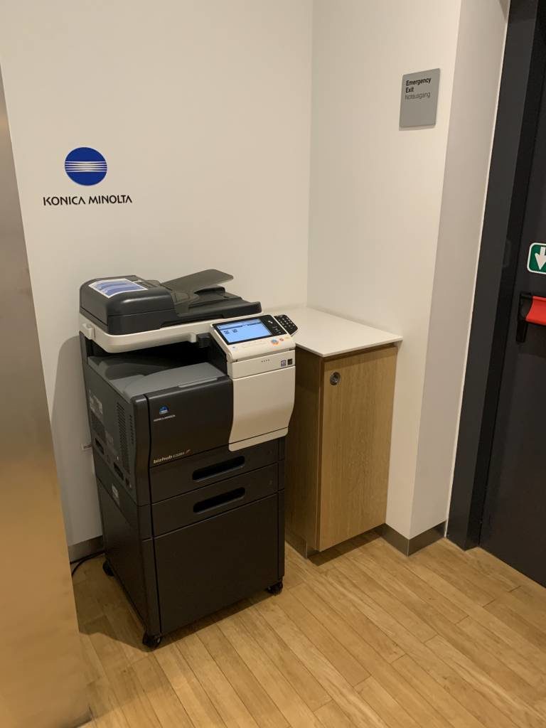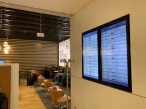 Betretet Ihr die Lounge durch die automatischen Schiebetüren, befindet sich der Empfang zur rechten Hand. Dort könnt Ihr Euren Boarding Pass scannen und erhaltet Zugang zur Lounge. Gegenüber der Rezeption befindet sich eine erste bequeme Sitzgruppe.
