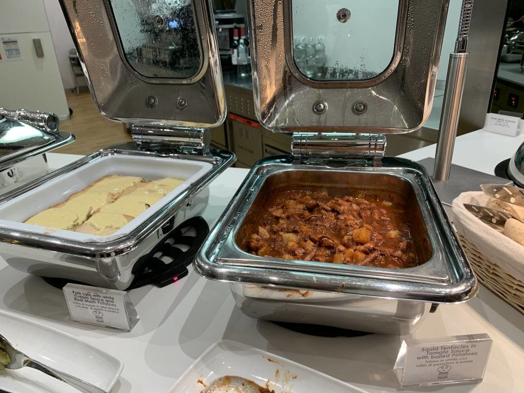 Warme Gerichte in der Lufthansa Lounge.