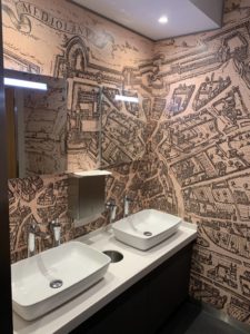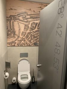Der Zugang zu den Toiletten befindet sich hinter einer Glasschiebetür. Dort werdet Ihr mit einem „Premium Restrooms by Villeroy & Boch“ empfangen. Der komplette Bereich ist ziemlich stylisch eingerichtet. Die Toiletten waren bei unserem Besuch sehr sauber.