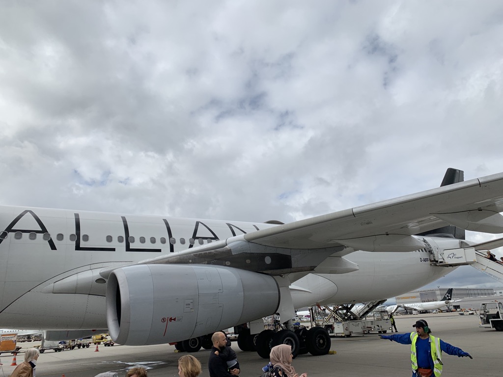 Was die Lufthansa CityLine Business Class auf der Langstrecke im Airbus A340-300 beim Boarding sehr besonders macht ist, dass sie in fast allen Fällen mit Bussen abgefertigt werden. Die Airbus A340-300 stehen fast immer auf dem Vorfeld und nicht am Gebäude, was auch mit der „niedrigen Bedeutung“ der Flüge begründet werden kann.