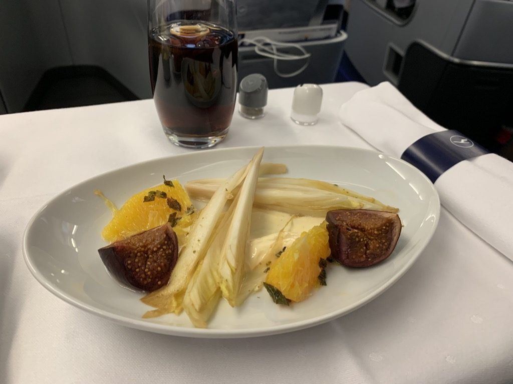 Das Perlhuhn gehört zu den besten Gerichten, welche ich in der Business Class je serviert bekommen habe. Auch wenn man es sicher nicht mit einem Restaurant am Boden vergleichen darf, für Flugzeug Standards ist es ein wirklich gutes Gericht.