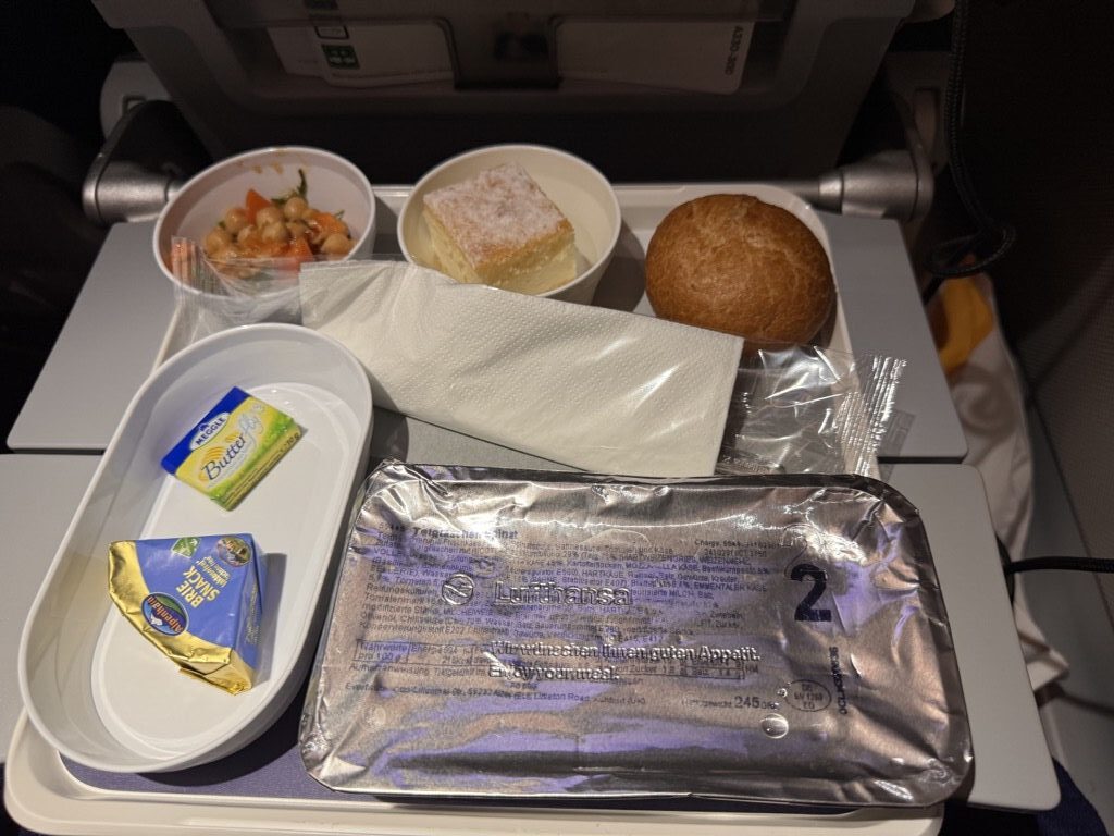 Gefreut hat mich das Besteck und der Fakt, dass es kein nachhaltiges Holzbesteck war, bei dem ich das Gefühl habe auf einer Baumrinde rum zu lutschen. Bei einem unserer Flüge in der Condor Business Class von Mallorca nach Frankfurt hat mich dies (in einer Business Class!!) wirklich negativ überrascht. Direkt musste ich an diesen vergangenen Flug denken und war von dem Catering der Lufthansa Economy Class in diesem Fall weitaus mehr angetan als von dem was Condor damals abgeliefert hat.