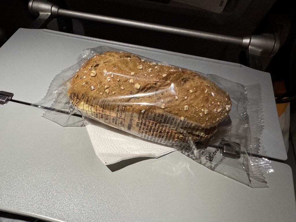 Etwa eine Stunde vor der Landung wurden noch Sandwiches ausgegeben, was mich etwas überrascht hat, denn knapp zwei Stunden vorher gab es erst das Hotmeal. Ich habe das Sandwich dennoch angenommen, um es im Anschluss meinem Uber-Fahrer anzubieten, der sich darüber sehr gefreut hat. Hungrig ist diesmal sicher niemand von Bord gegangen.