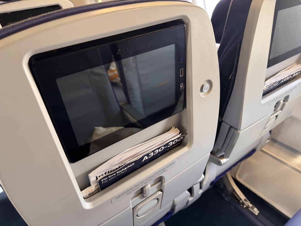 Lufthansa bietet auf diesem Flugzeug in der Economy Class auch Inflight-Entertainment an, ich habe aber tatsächlich lieber angefangen den neuen Fitzek zu lesen, Filmen kann ich aktuell irgendwie nichts abgewinnen. Für einen kurzen Flug ist der Bildschirm absolut ausreichend, die Touchbedienung war ultra schwergängig, mit der Fernbedienung war es einfacher. Die Flight Map war diesmal mein Entertainment der Wahl und sie hat mich ausreichend unterhalten :D.