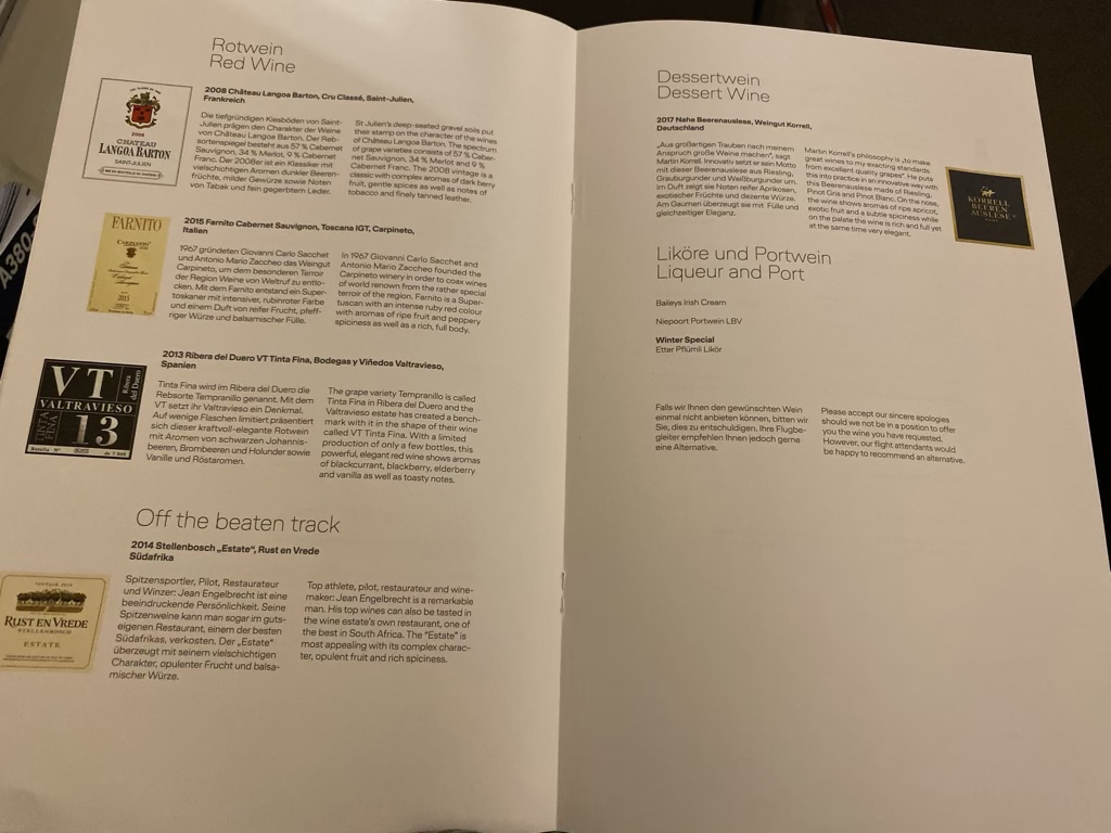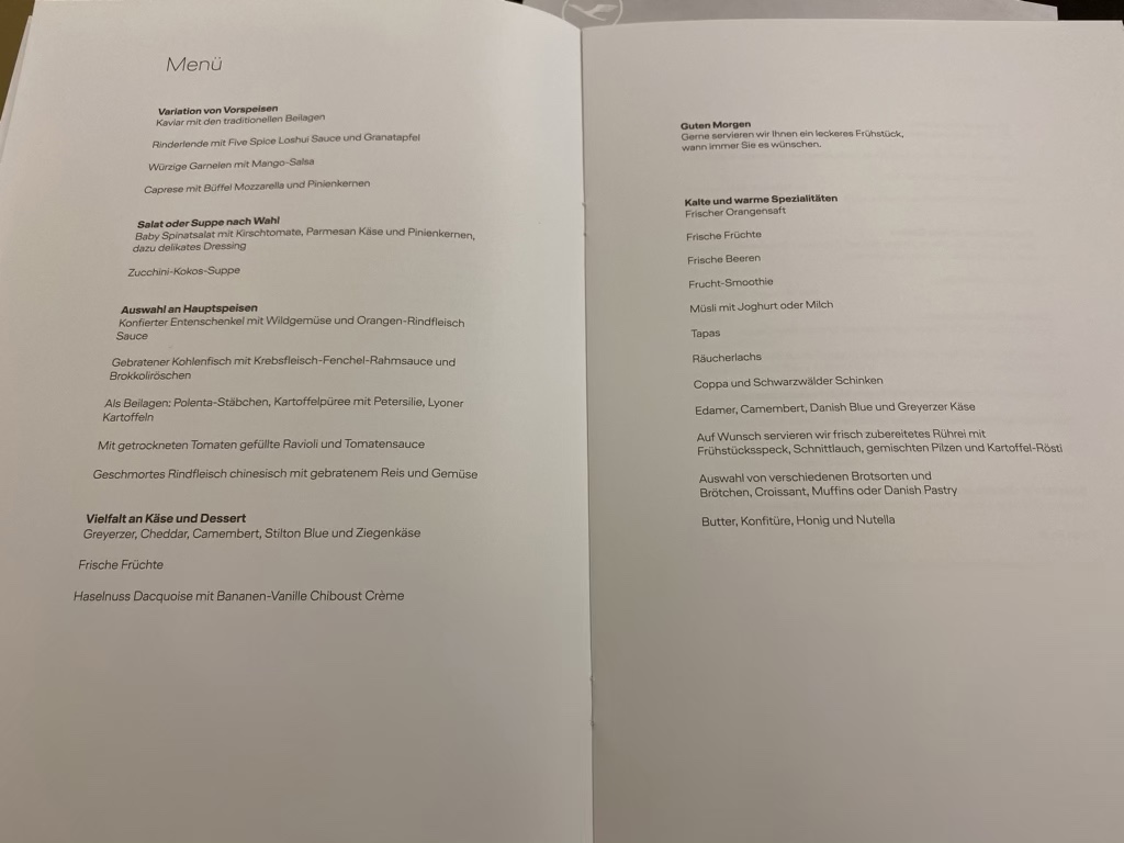 Noch vor dem Start wurde die Essensbestellung aufgenommen. Obwohl es ein Nachtflug war, gab es die üblich große Auswahl.