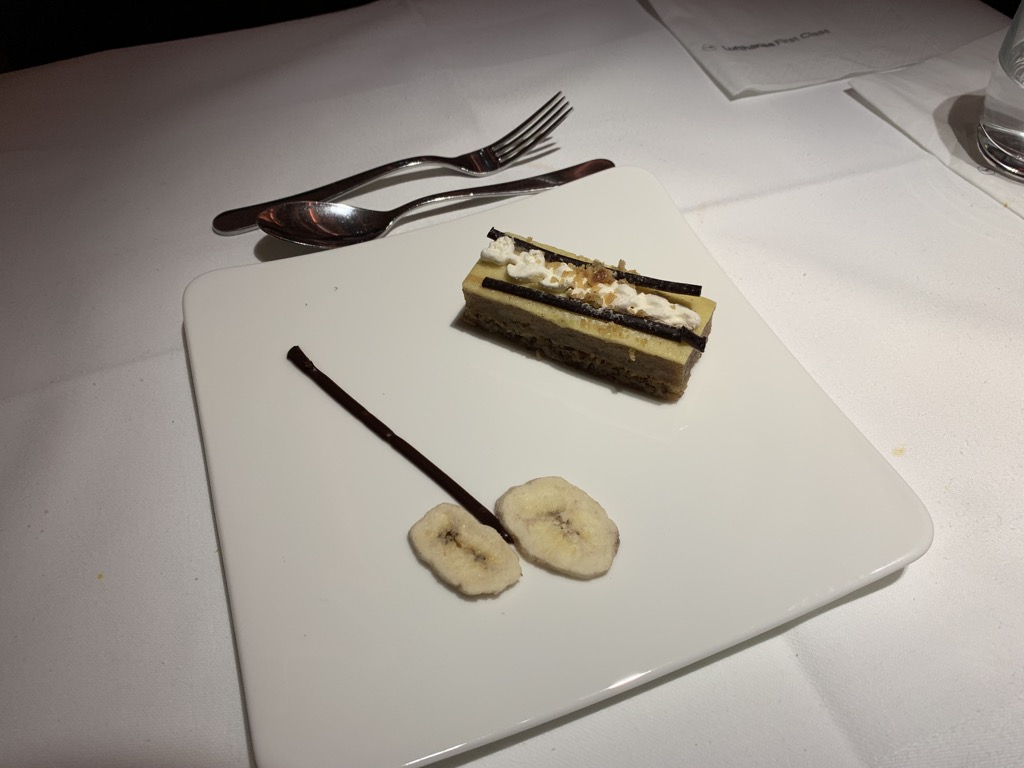 Die Vorspeisen, welche im Anschluss gereicht wurden und auch die Hauptspeise waren ebenfalls sehr lecker und schön anzusehen. Beim Dessert habe ich leider, wie so oft, aufgegeben und mich dazu entschieden zu schlafen. Es war immerhin schon ca. 1:30 in der Nacht. Da Christoph auf die Vorspeisen und den Hauptgang verzichtet hat, hat er sich fürs Dessert „geopfert“ und es als gut befunden.