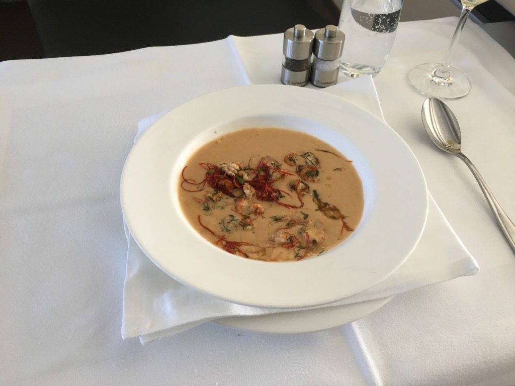 Christoph hat eine etwas spezielle Beziehung zu indischem Essen und daher hat er sich vorsorglich noch die Krustentiersuppe vom Snack Menü bestellt. Auch wenn dies doch nicht nötig gewesen wäre, war sie seiner Aussage nach sehr lecker.