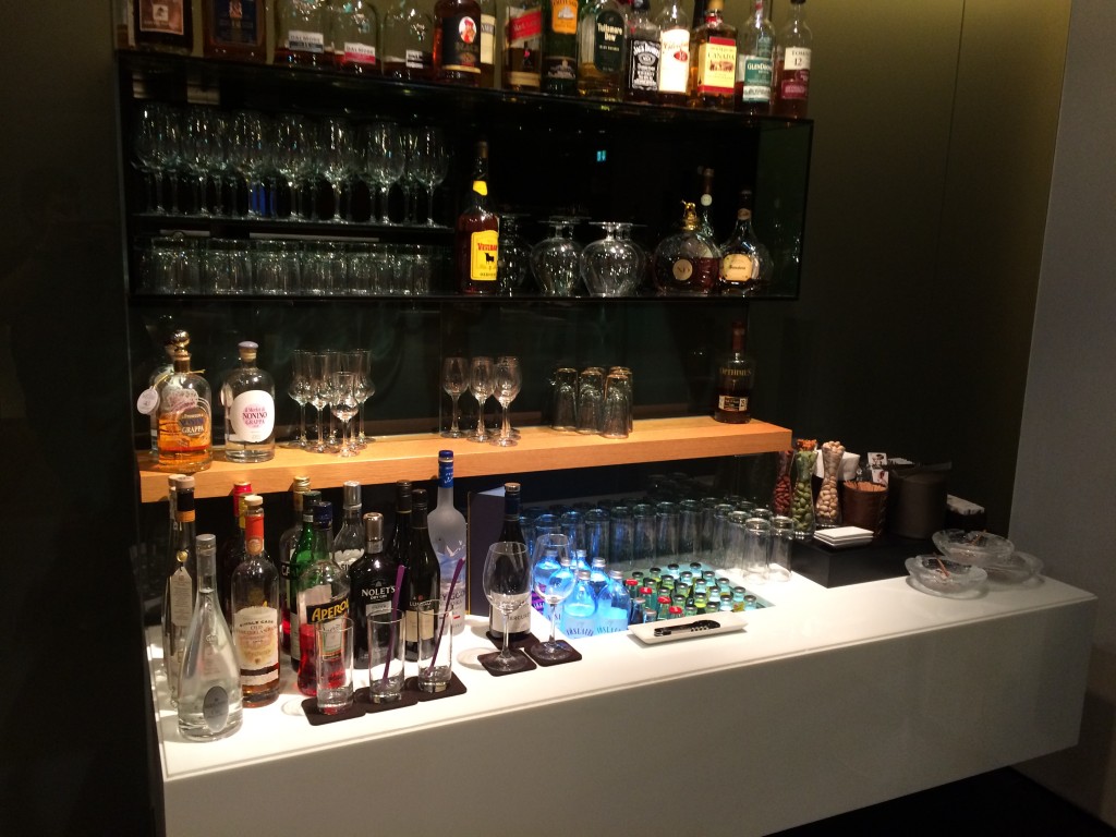 Natürlich verfügt die Lufthansa Fist Class Lounge A Frankfurt ebenso wie das Lufthansa First Class Terminal auch über eine vollständig ausgestattete und bediente Bar sowie einen Restaurantbereich.