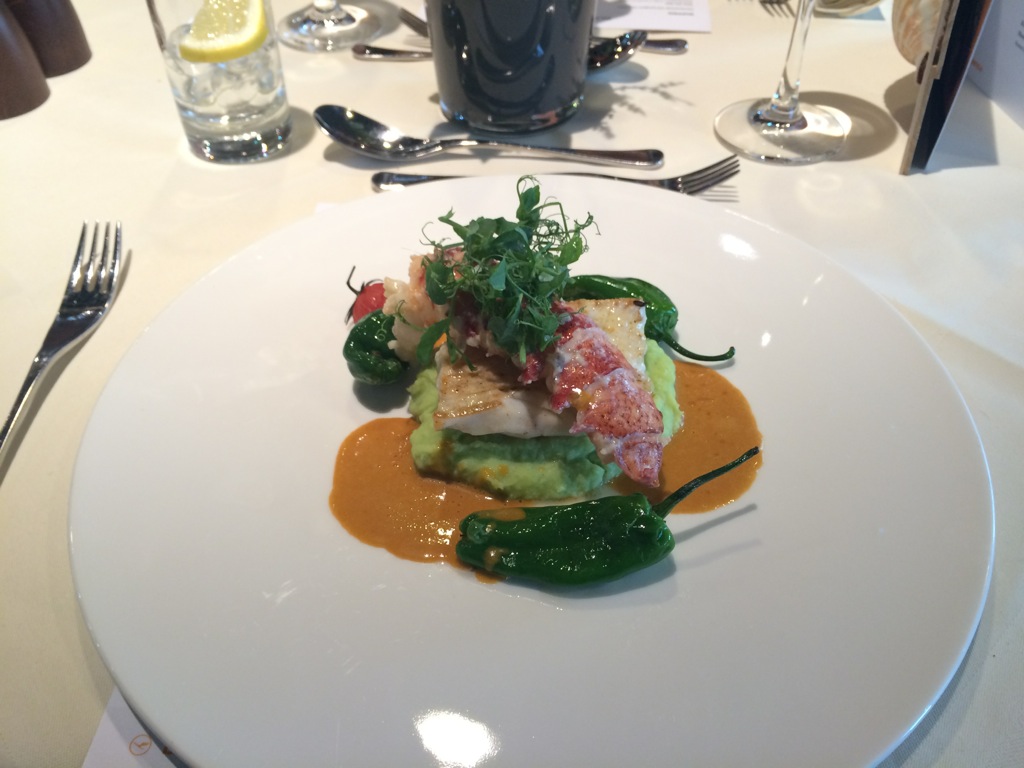 Der Restaurantbereich wird von Lufthansa mit Dining & Vining beschrieben. Hierbei orientiert man sich am Angebot der gehobenen Gastronomie, wobei man durchaus auch bemüht ist bodenständige Gerichte anzubieten. Ein Klassiker ist hierbei sicherlich das berühmte Lufthansa First Class Wiener Schnitzel.