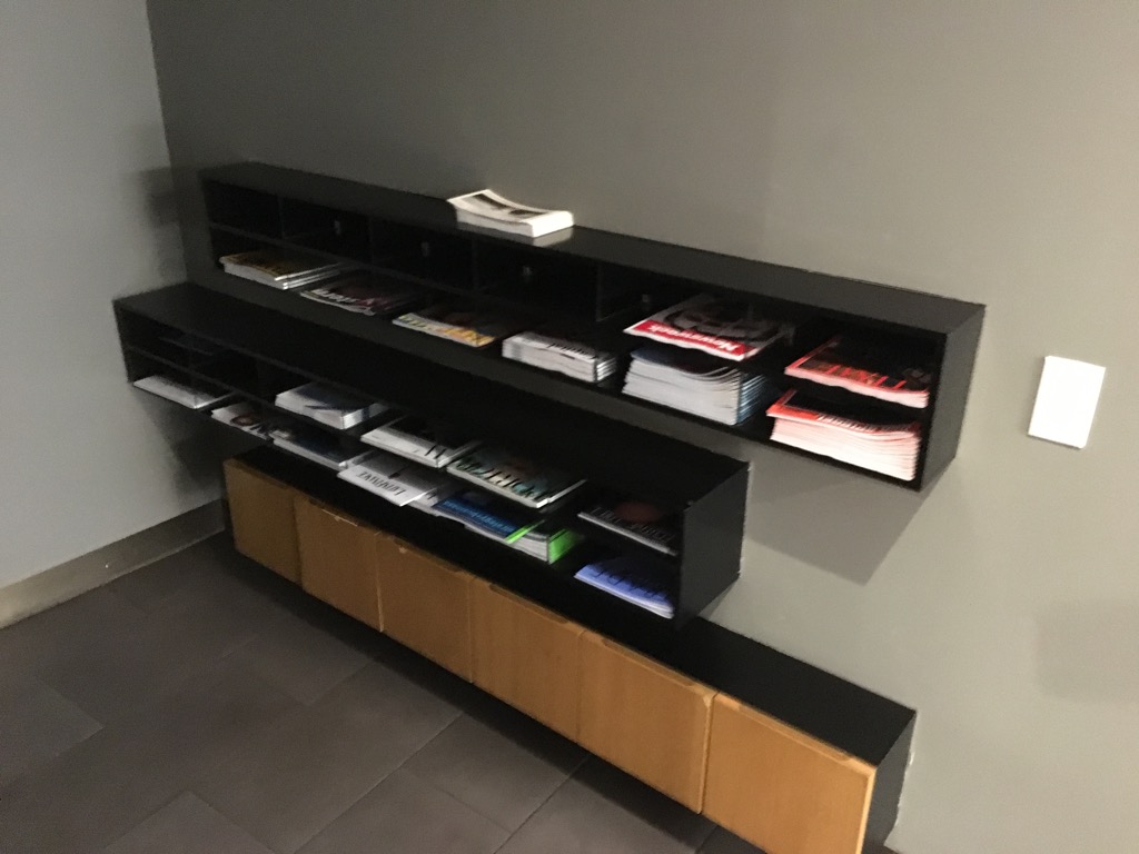 Neben der Garderobe bei den Fahrstühlen befindet sich noch eine große Auswahl an Zeitschriften. Die üblichen weiteren Lufthansa First Class Lounge Einrichtungen, wie Duschen und Work Stations fehlen leider in der Lufthansa First Class Lounge New York. Allerdings kann man natürlich die Duschen der Senator Lounge ein Stockwerk tiefer nutzen.