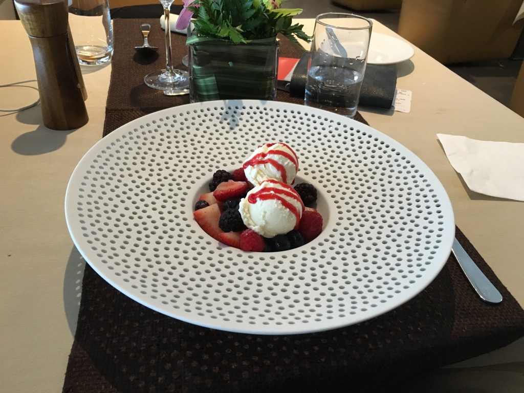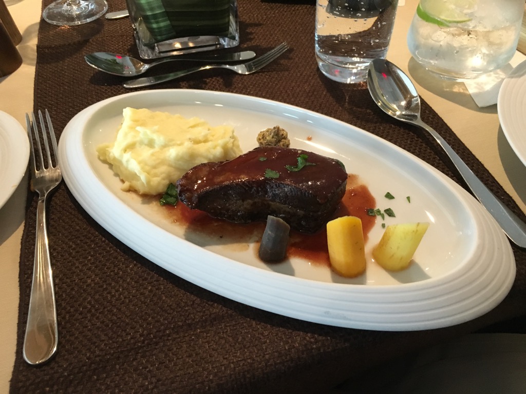 Ich habe mich für einige kalte Vorspeisen vom Buffet, sowie ein 72 Hour Cooke Short Rib entschieden. Als Dessert wählte ich noch die marinierten Früchte mit Vanille Eis. Alles war sehr schmackhaft und auch die Präsentation der Speisen gefiel mir. Besonders in den USA muss man recht teuer essen gehen, um solch eine Qualität im Restaurant serviert zu bekommen.