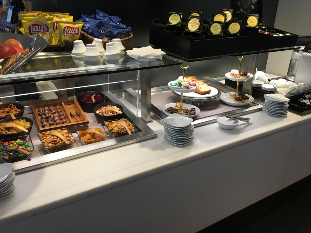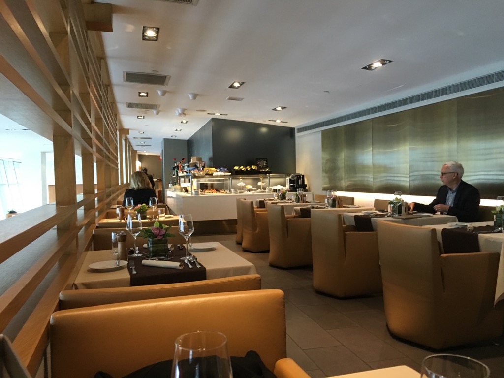 Im hinteren Bereich der Lounge befindet sich der Restaurant Bereich, welcher mit dem großen Buffet deutlich über die Hälfte der Lounge einnimmt.