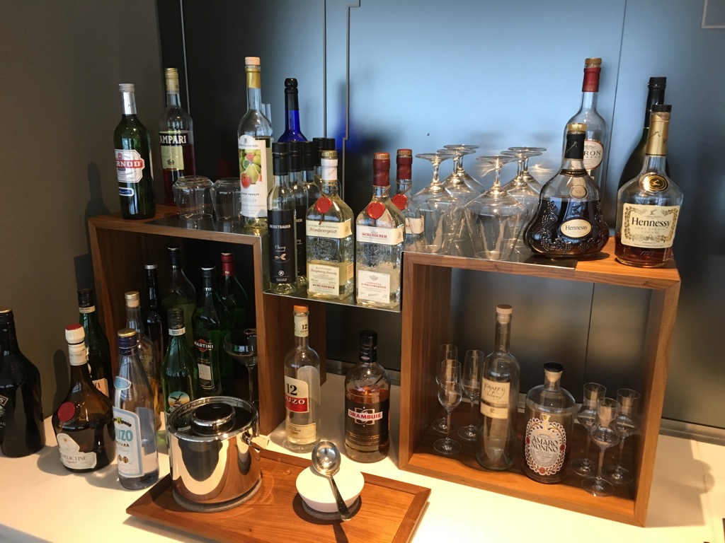 Die Getränke wurden, wie die Speisen von den Kellnerinnen am Platz serviert. Dabei gab es neben der Auswahl an verschiedenen Weinen und Champagner auch eine nochmals deutlich größerer Auswahl an Spirituosen, als an der Bar der Senator Lounge.