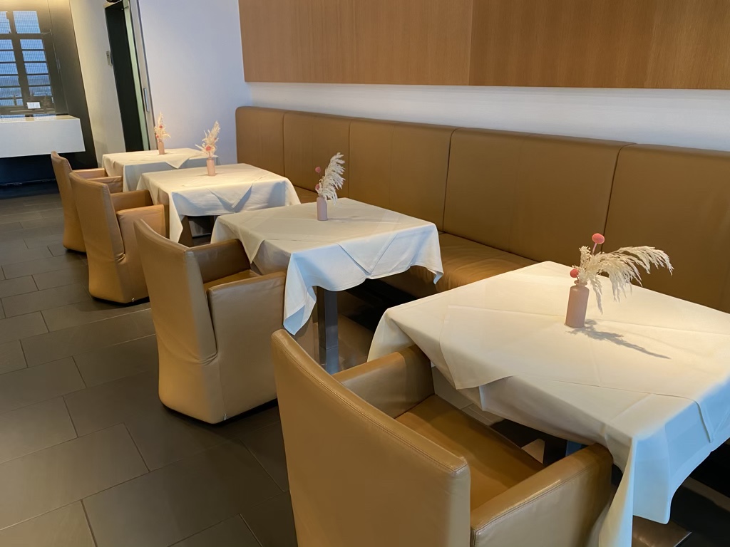 Wirklich viele räumliche Veränderungen gibt es in der Lounge nicht, dennoch sind uns einige Kleinigkeiten aufgefallen. Beim Einlass wurde, wie in Stadtrestaurants auch, der Impf- /Testnachweis kontrolliert. Um den Abstand zu wahren, waren einzelne Sessel, die recht nah an anderen standen, mit einem Hinweis gesperrt. Als Zusammenreisende war es kein Problem sich auf einem der „gesperrten“ Sessel niederzulassen, um nebeneinander zu sitzen.
