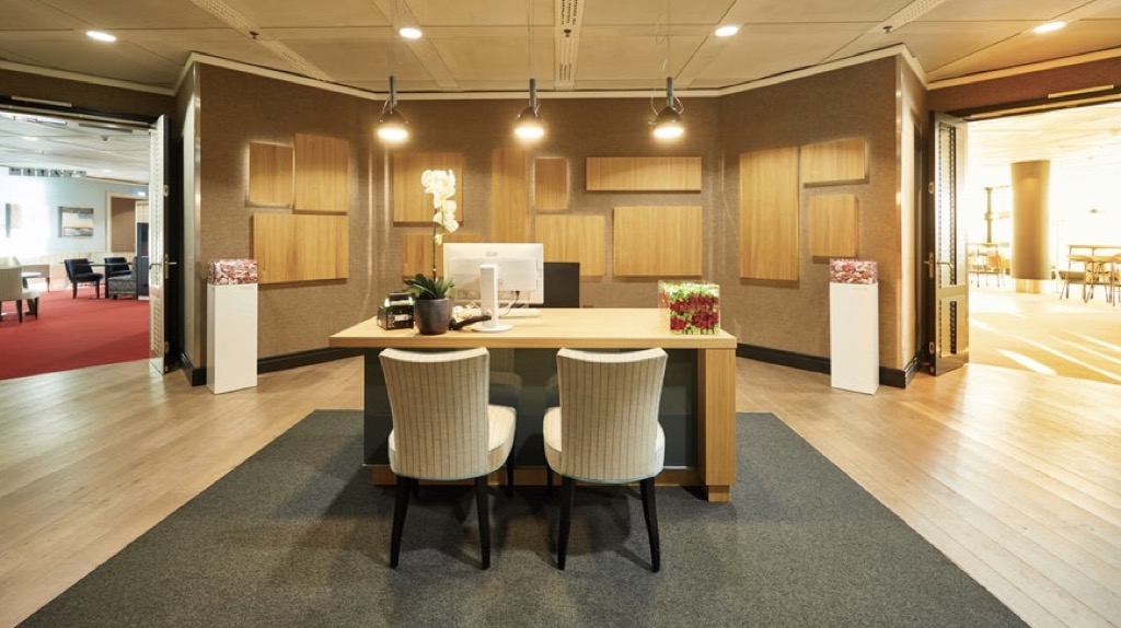 Links neben dem zentralen Front Desk, an welchem Lufthansa Mittarbeiter sitzen, befindet sich der weitaus größere Teil der Lounge. Dieser Teil ist in eine ganze Reihe kleinerer Räume unterteilt.