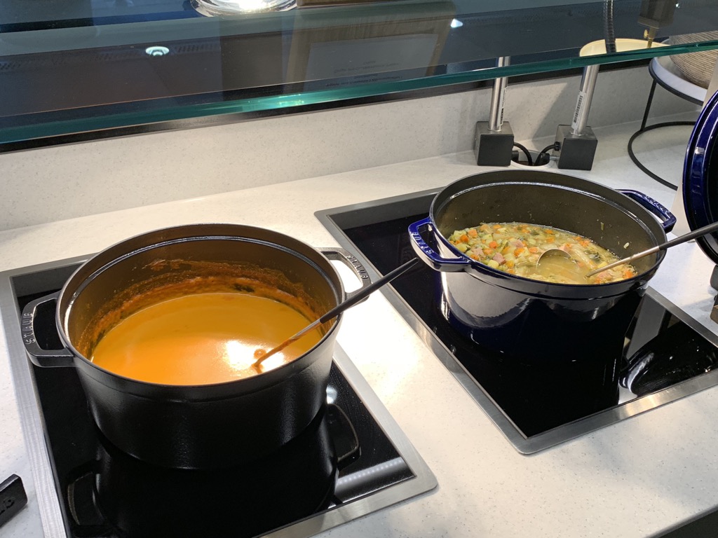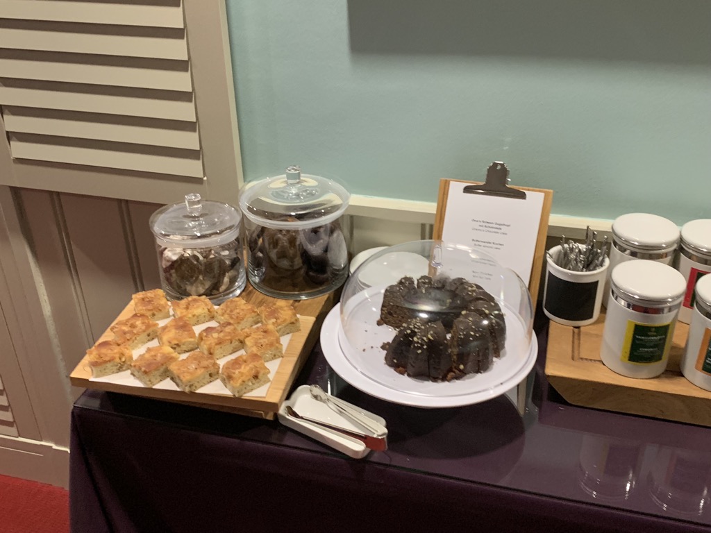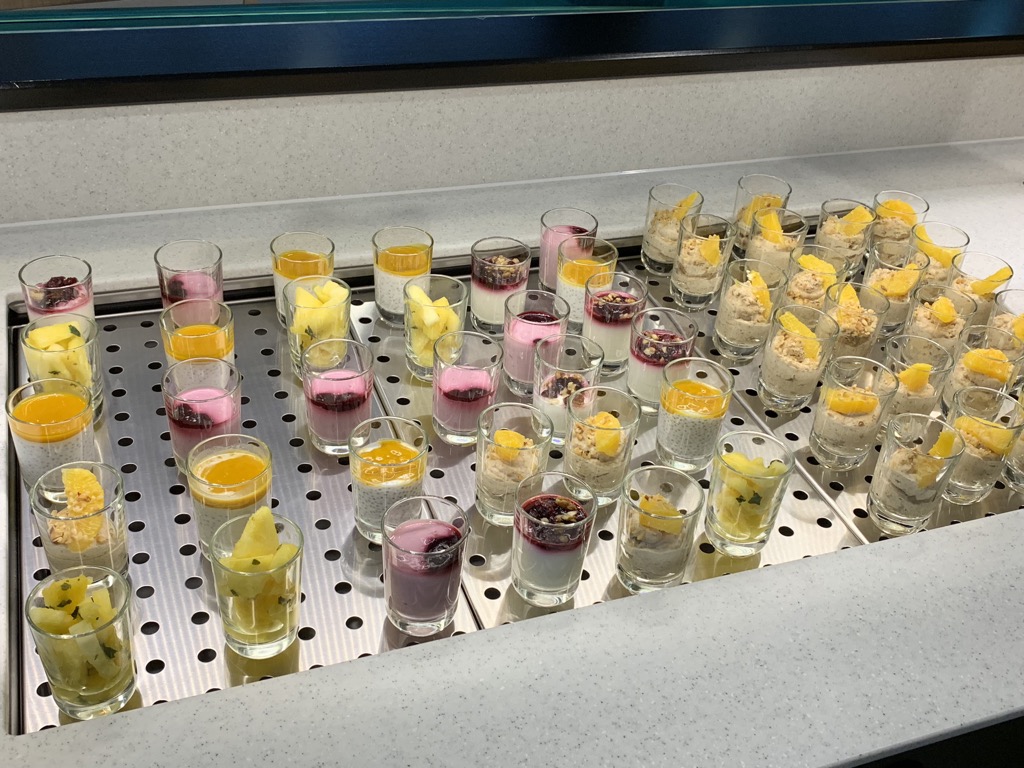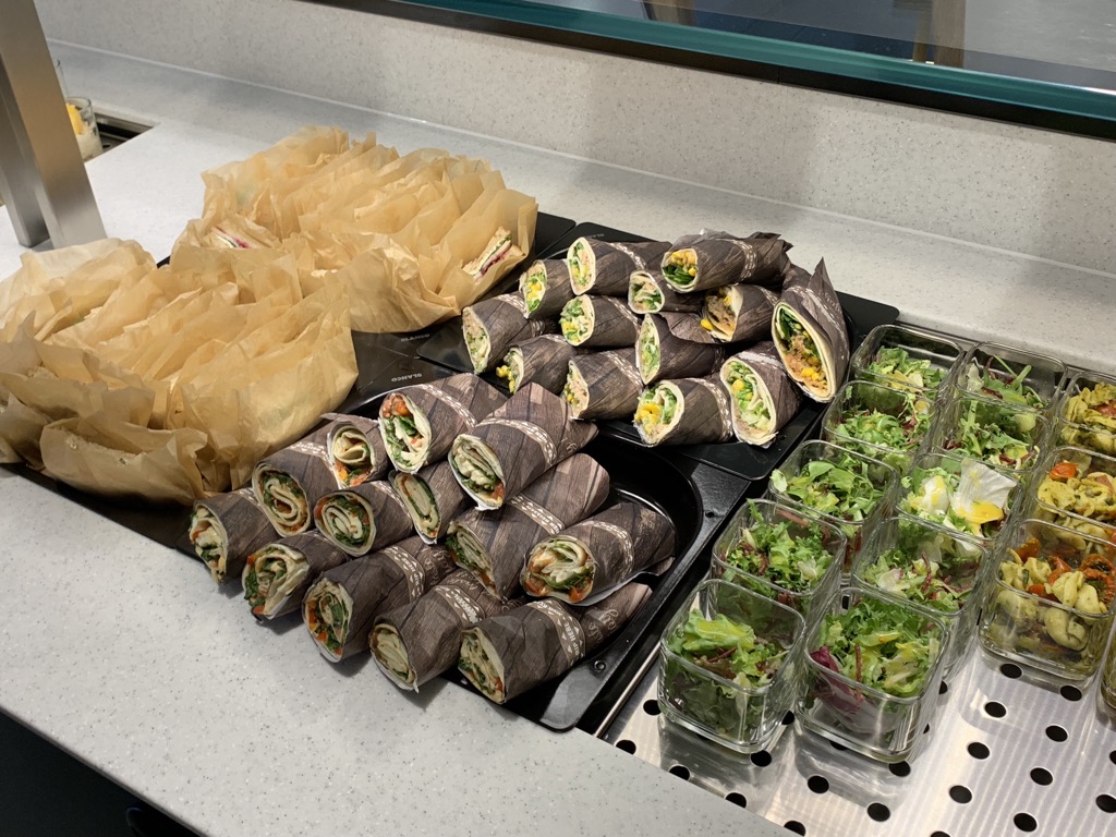 Auf dem großen Buffet im rechten Teil der Lounge findet man neben der neuen Lufthansa Candy Bar am Buffet auch einige Salate, Sandwiches, Wraps, Suppen und Desserts. Auch wenn es keine warmen Hauptspeisen gab, fand ich das Angebot durchaus ansprechend und absolut ausreichend.