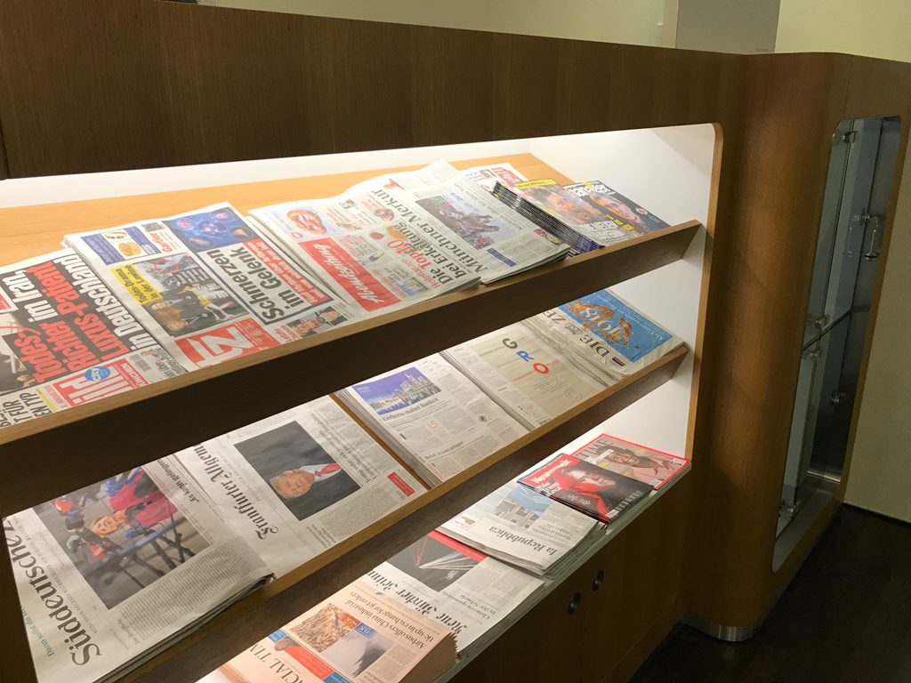 Natürlich werden auch im Senator Café diverse Zeitungen und Zeitschriften und aktuelle Fluginformationen für die Gäste bereitgehalten.