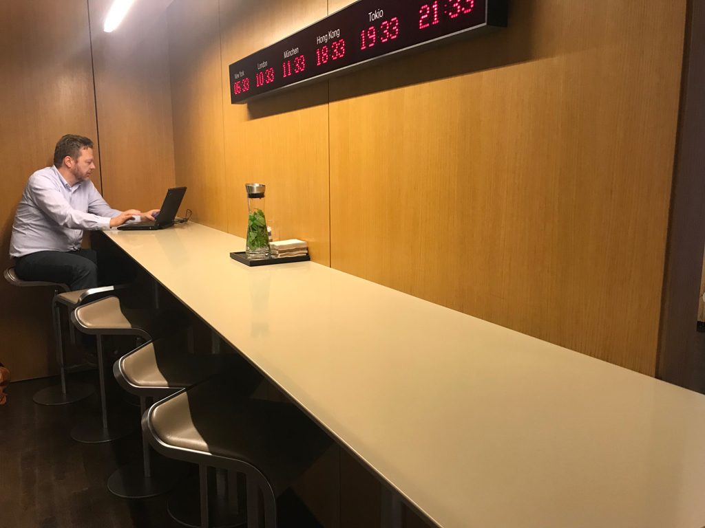 Die Lounge, oder besser, das Café, liegt im „alten“ und klassischen Lufthansa-Terminal. Es ist kaum zu übersehen, da es direkt gegenüber der Lufthansa Senator Lounge, die wir Euch hier bereits vorgestellt haben, liegt. Zugangsberechtigte Gäste können also frei zwischen der Lounge oder dem Café auswählen. Letzteres hat dabei „nur“ bis 19:00 Uhr geöffnet, später stehen aber selbstverständlich weiterhin die Lufthansa Lounges zur Verfügung.