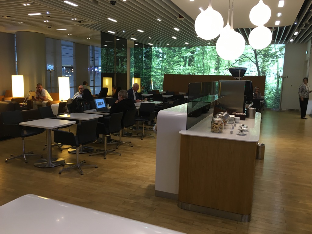 Es sind fast zeitgleich eine 747-400 von LH und eine A330 von Swiss im Abflug. Es gibt damit sicherlich über 100 Businessgäste plus Sens und Hons und Frequent traveler, die auch noch als Eco Flieger in die Lounge wollen.
