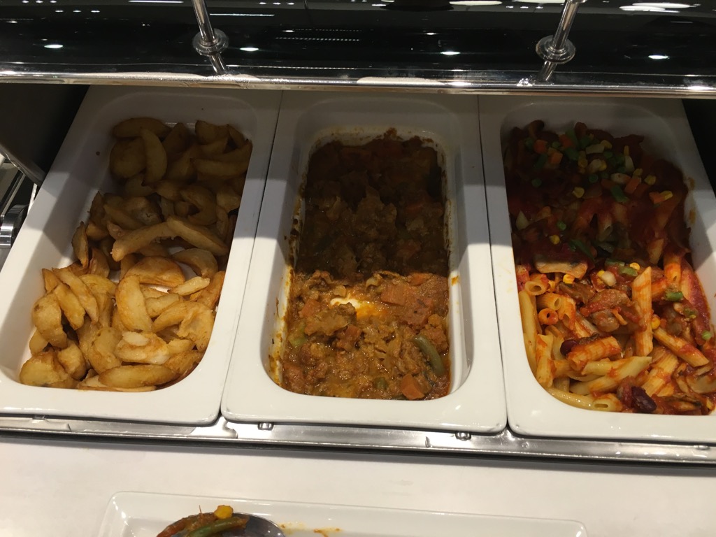 Wie in Senator Lounges üblich, werden auch in Dubai Speisen und Getränke zur Selbstbedienung auf einem Buffet angeboten. Neben Salat, Suppen, Käse Sandwiches und Wraps, gab es auch mehrere warme Optionen.