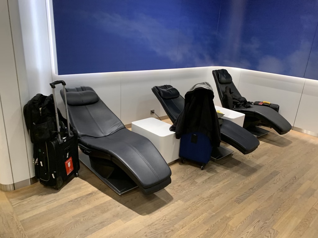 Wer gerne schlafen oder sich ausruhen möchte, für den gibt es einige Liegen im vorderen Bereich der Lounge. Um richtig zu schlafen, gibt es am Ende der Lounge auch noch recht ruhige Ruheräume.