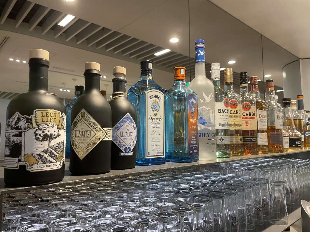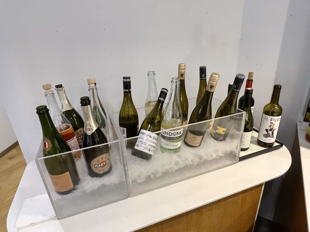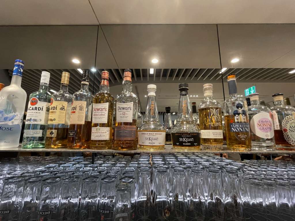Die Auswahl an Hochprozentigem empfand ich durchaus als umfangreich. Lufthansa serviert hier auch nicht den billigsten Fusel. So gibt es auch immer mal wieder spezielle Marken, die promotet werden. Aufgefallen war mir die Vielzahl an alkoholfreien Ersatz-Produkten – vom Gin bis hin zum Schaumwein. Nun ja, wer es mag.