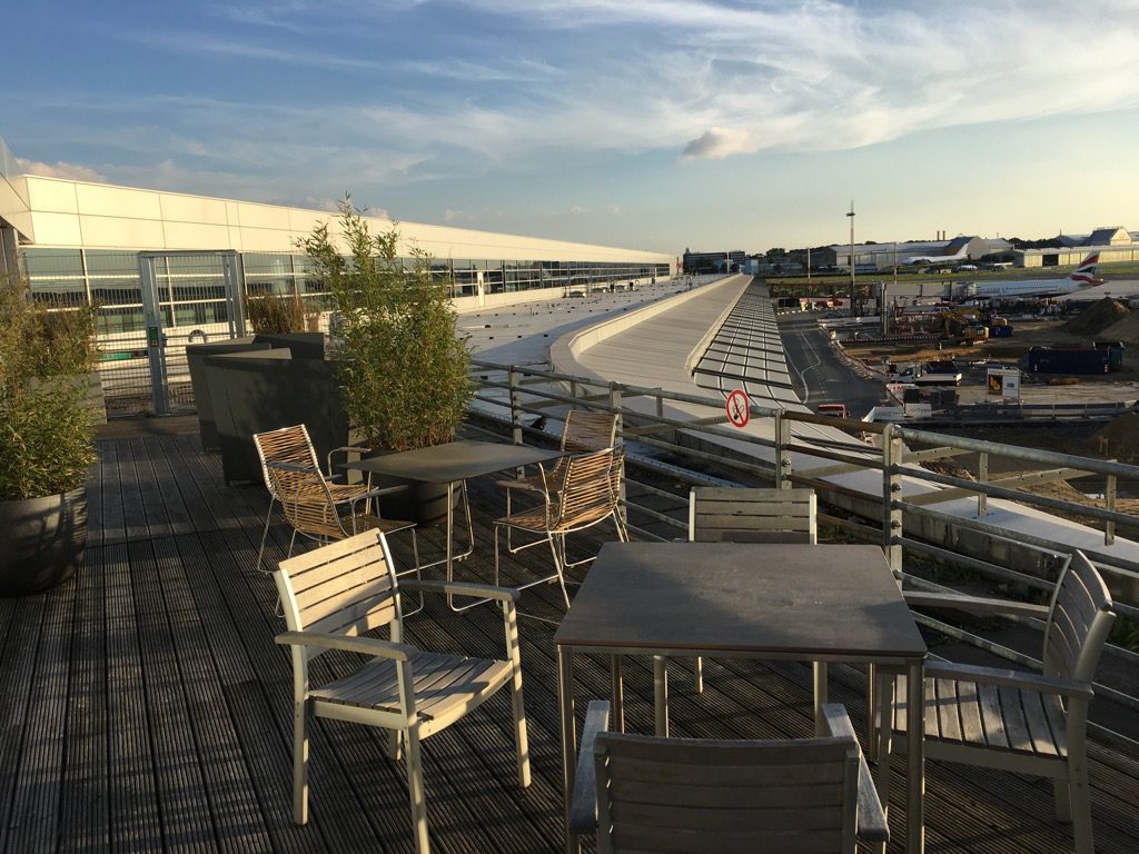 Absolutes Highlight der Lounge ist sicherlich die Dachterrasse. Hier lassen sich noch ein paar Sonnenstrahlen genießen, wenngleich man die Dachterrasse aufgrund der vorbeirollenden Flugzeuge nicht als leise bezeichnen kann.