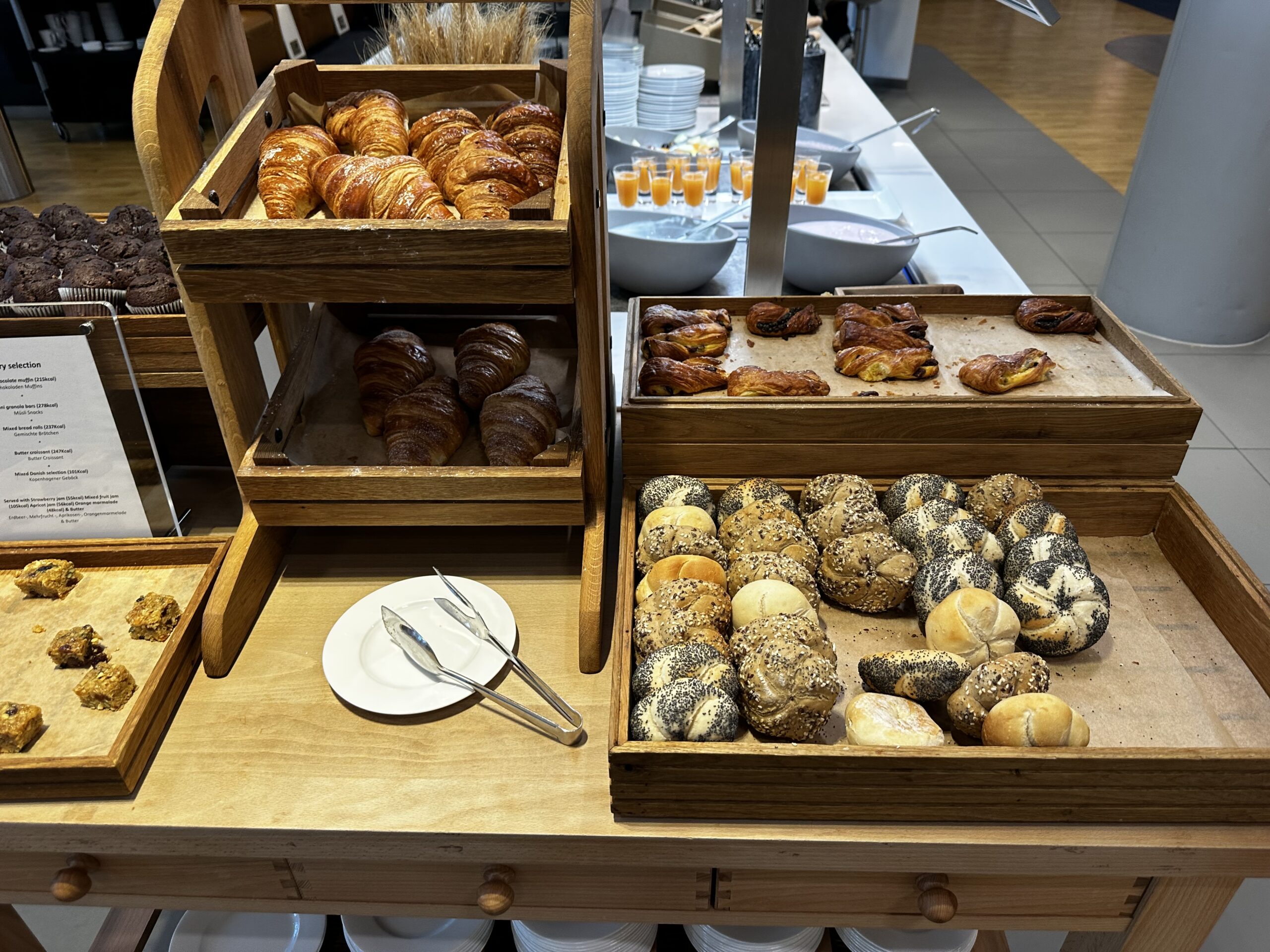 Das Buffet sieht LH-typisch sehr übersichtlich aus. Bei ausreichend Zeit würde ich immer den Weg in die SQ Lounge vorziehen, bei Abflug von B sowieso.