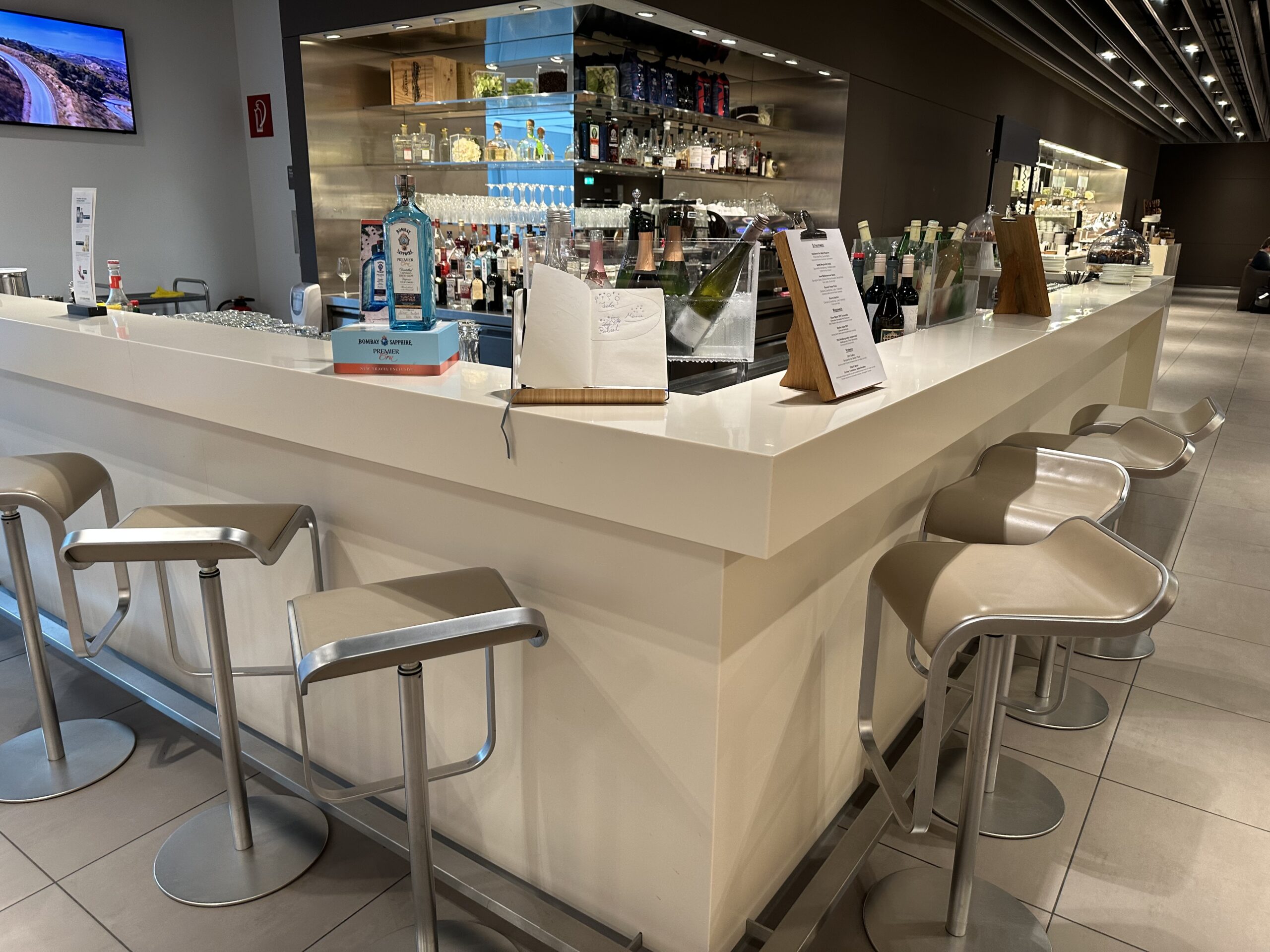 Getränke gibt es zur Selbstbedienung oder an der Bar. Dort werden Cappuccino & Co auch von Hand zubereitet. Die Auswahl ist identisch zu den anderen Lounge, es gibt Softdrinks, Bier, mehrere Wein- und Schaumweinsorten sowie Spirituosen.