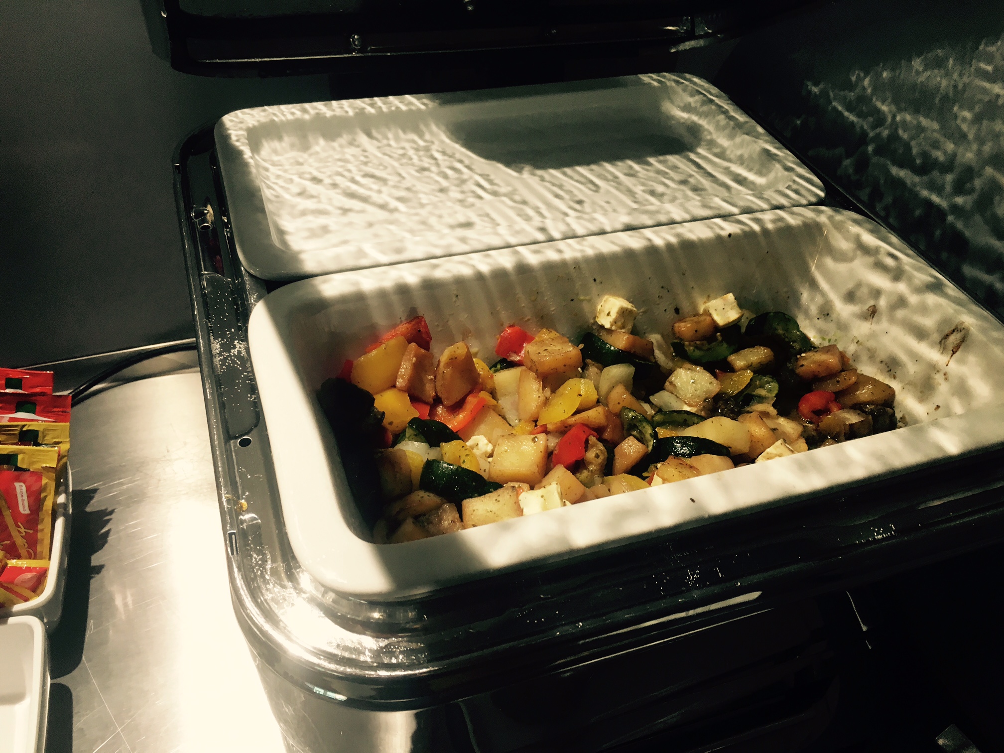 Bei meinem Besuch wurden neben kalten Speisen auf dem Salatbuffet auch einige warme Gerichte angeboten. Mit Nürnberger Rostbratwürsten, Sauerkraut, sowie einem vegetarischen Gericht, bot man hier auch regionale Spezialitäten an.
