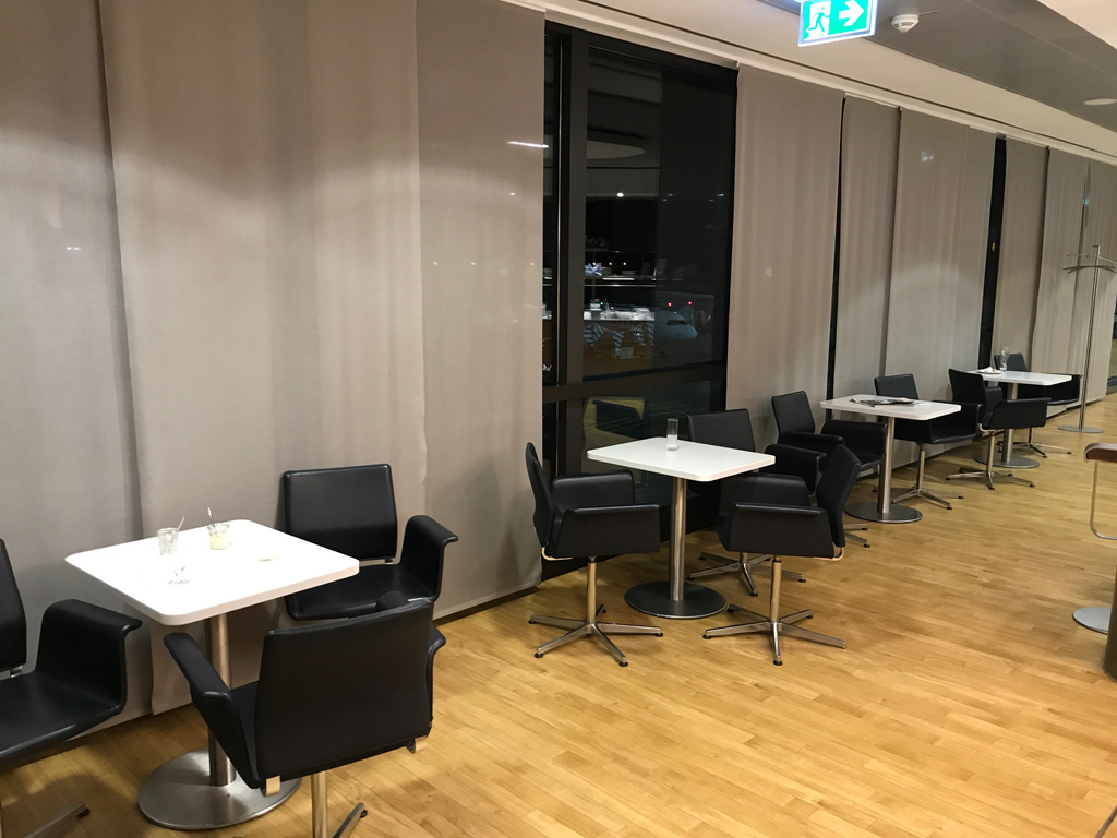 Beide Lounges verfügen über Sitzgelegenheiten mit Vorfeldblick, so dass man neben der Arbeit oder dem Essen auch einen Blick auf das Fluggeschehen am Hannover Airport werfen kann. Zudem entsteht durch die große Fensterfront in den Lounges tagsüber auch eine natürliche Helligkeit.