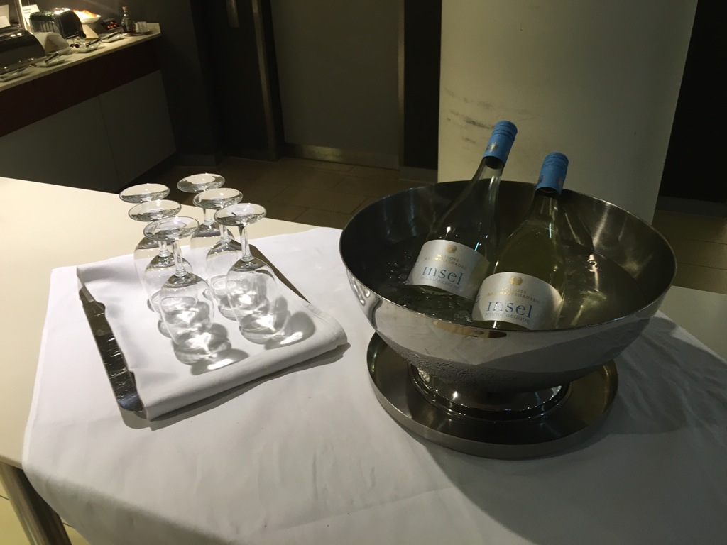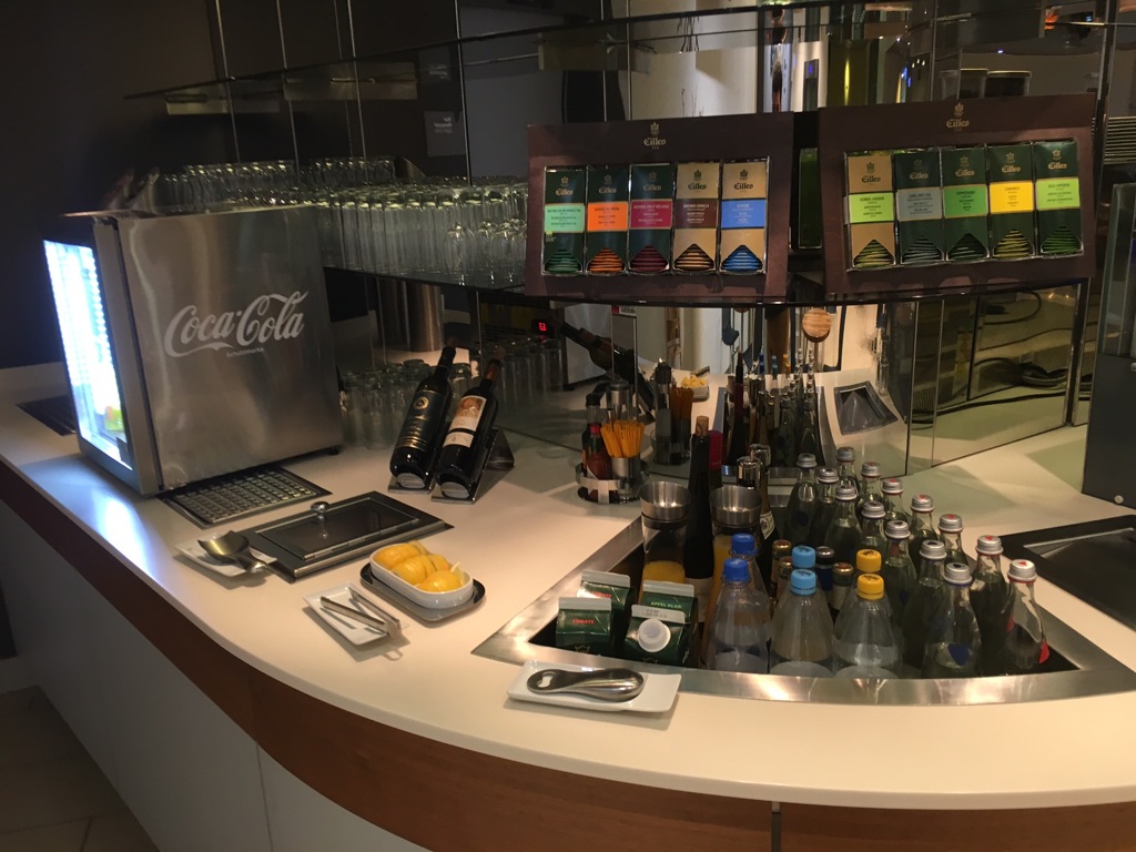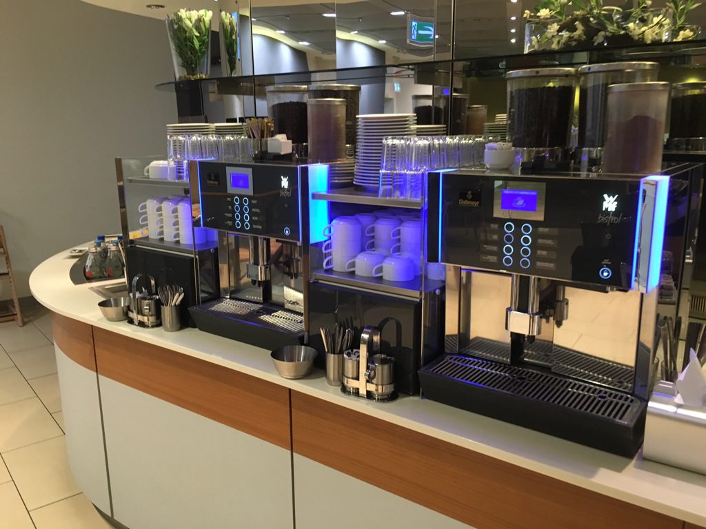 Die Auswahl an Getränken entspricht auch in etwa der einer Lufthansa Business Lounge. Das wohl wichtigste Gerät am Morgen ist der Kaffee aus dem WMF Kaffeevollautomat