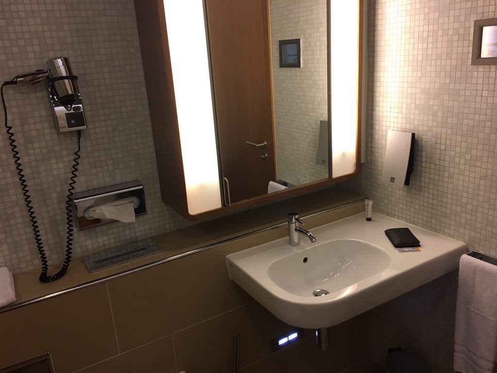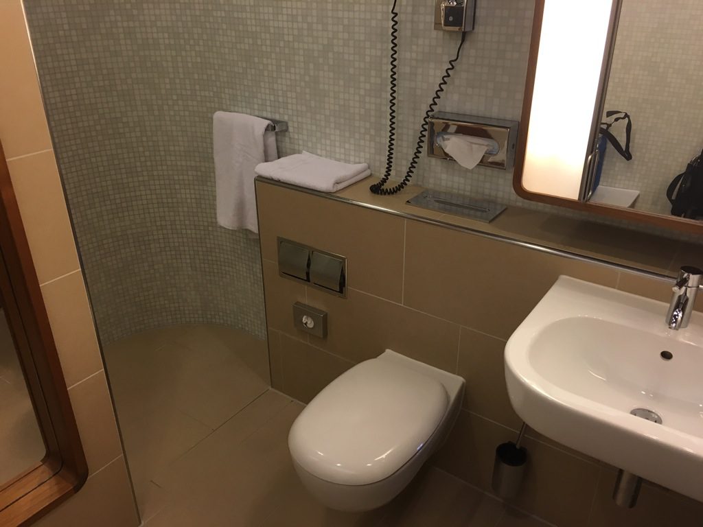 Was ich sehr interessant finde ist der Bügelservice für Hemden. Man hängt einfach sein Hemd in ein Fach hinter dem Spiegel. Ein Mitarbeiter entnimmt von außerhalb der Dusche das Hemd, bügelt es auf und hängt es wenige Minuten später wieder zurück.