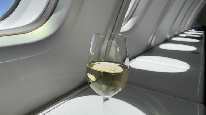 Auch dort wurde ich freundlich empfangen und erhielt bereits kurz nach dem Einnehmen meines Platzes ein Glas Winzersekt sowie die Menükarte- diese könnt Ihr hier auch online abrufen. Noch vor dem Start wurden Statusgäste, unter anderem ich, durch den Purser des Fluges begrüßt.