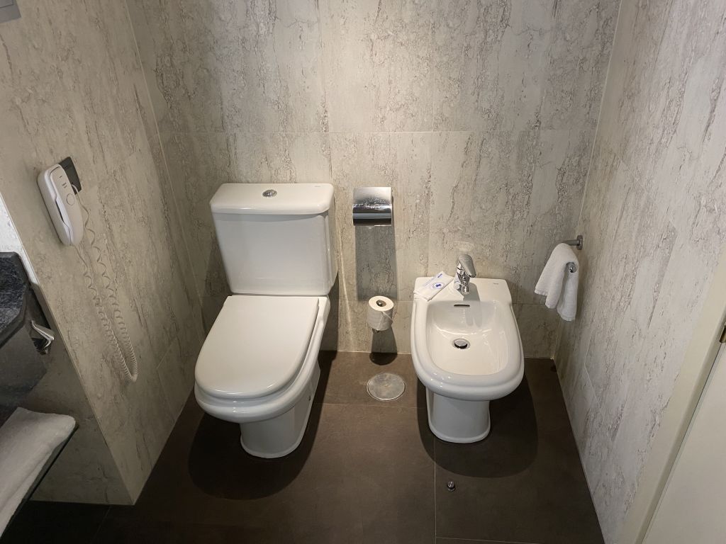 Im Badezimmer gibt es eine bodentiefe Dusche und einen Waschtisch. WC und Bidet sind in einer etwas abgetrennten Ecke zu finden. Pflegeprodukte gibt es weiterhin in Reisegröße. Die Marke Prija kannte ich jedoch nicht. Das zeigte mir, dass mein letzter Aufenthalt in einem Marriott Hotel doch schon etwas her war.