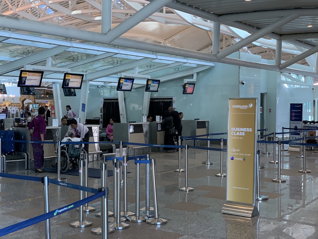 Ich bin etwa zwei Stunden vor dem Abflug am Flughafen von Denpasar angekommen. Der Malaysian Airlines Check-In Schalter war zu dieser Zeit mit vier offenen Schaltern besetzt und interessanterweise war hier gerade niemand. Ich habe dennoch am Business Class Schalter eingecheckt, wo man schon meine Bordkarte gedruckt und eine fertig geschriebene Lounge Invitation vorliegen hatte.