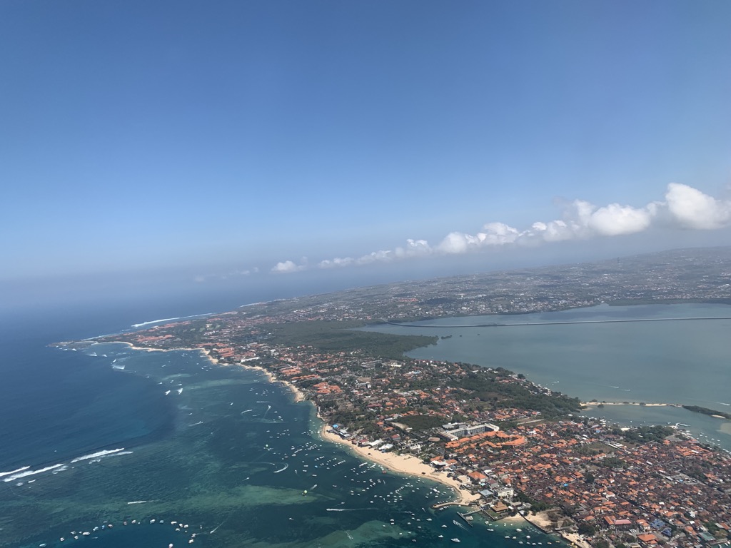 Mit etwa 35 Minuten Verspätung sind wir auf Bali dann zur Startbahn gerollt und über die Insel gestartet, was einige schöne Ausblicke mit sich brachte.