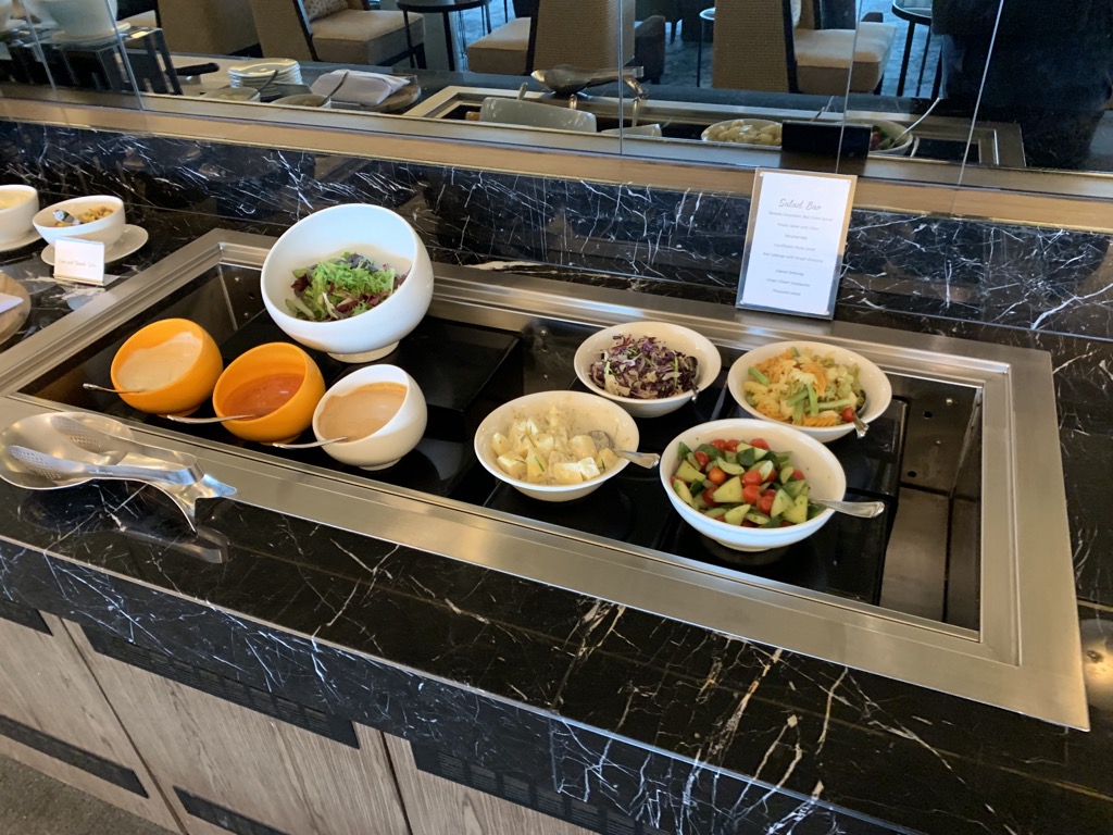In der Malaysia Airlines Lounge gab es ein kleines Buffet, auf welchem man einige Salate und kleine Kuchen finden konnte, weshalb mich die Lounge im ersten Moment sehr an eine Hotel Club Lounge erinnert hat. Allerdings wurde man vom Personal am Platz bedient und hatte hierbei deutlich mehr Auswahl.